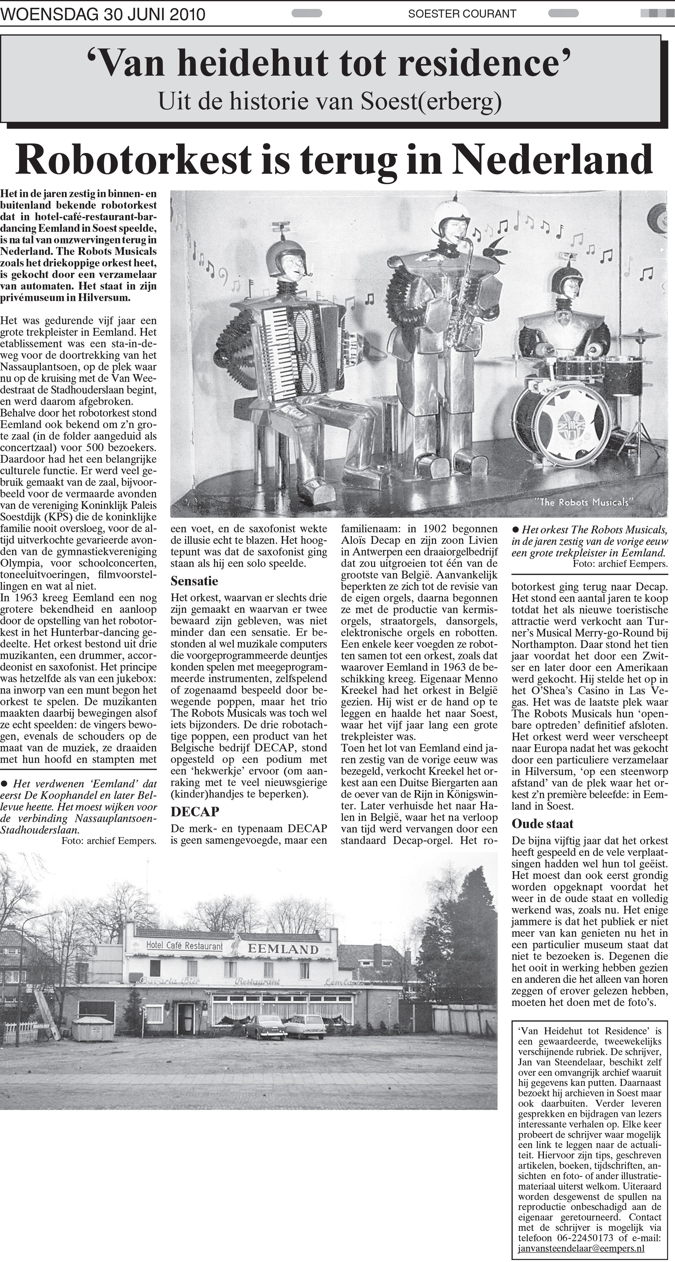 Het Hotel Café Restaurant Eemland is vooral bekend van "The Robot Musicals" een dansorkest van robots. (zie artikel in Van Heidehut tot Residence, Robotorkest terug in Nederland, geschreven door Jan van Steendelaar en gepubliceerd in Soester Courant 30 juni 2010).