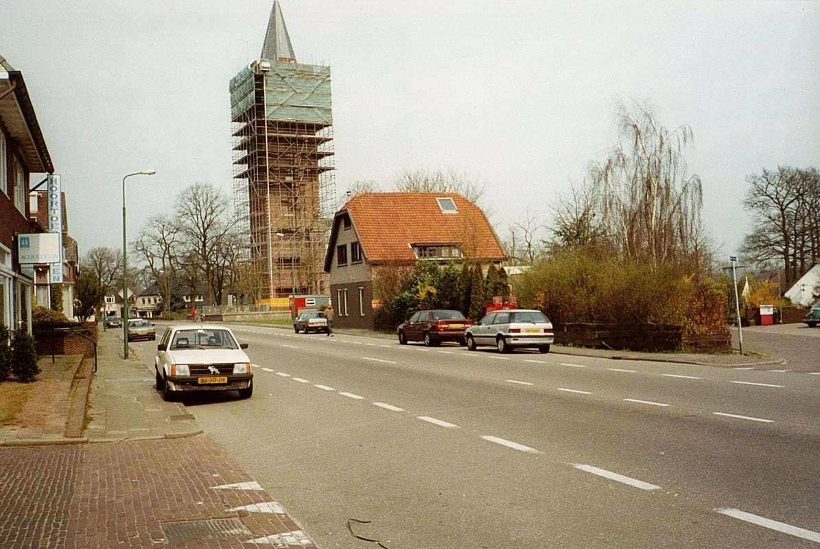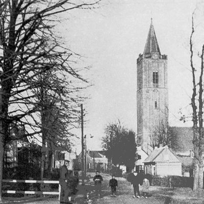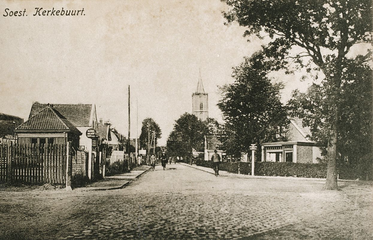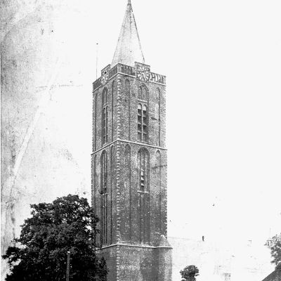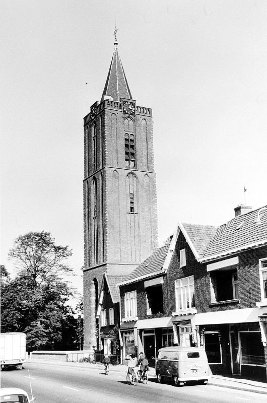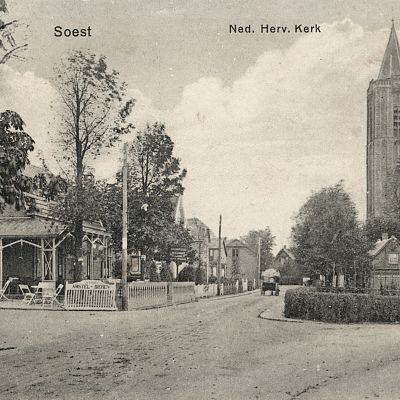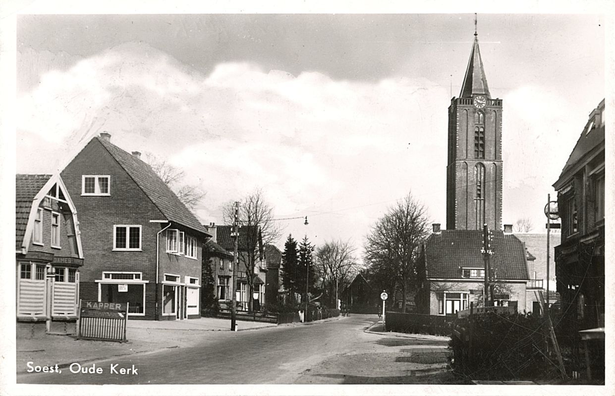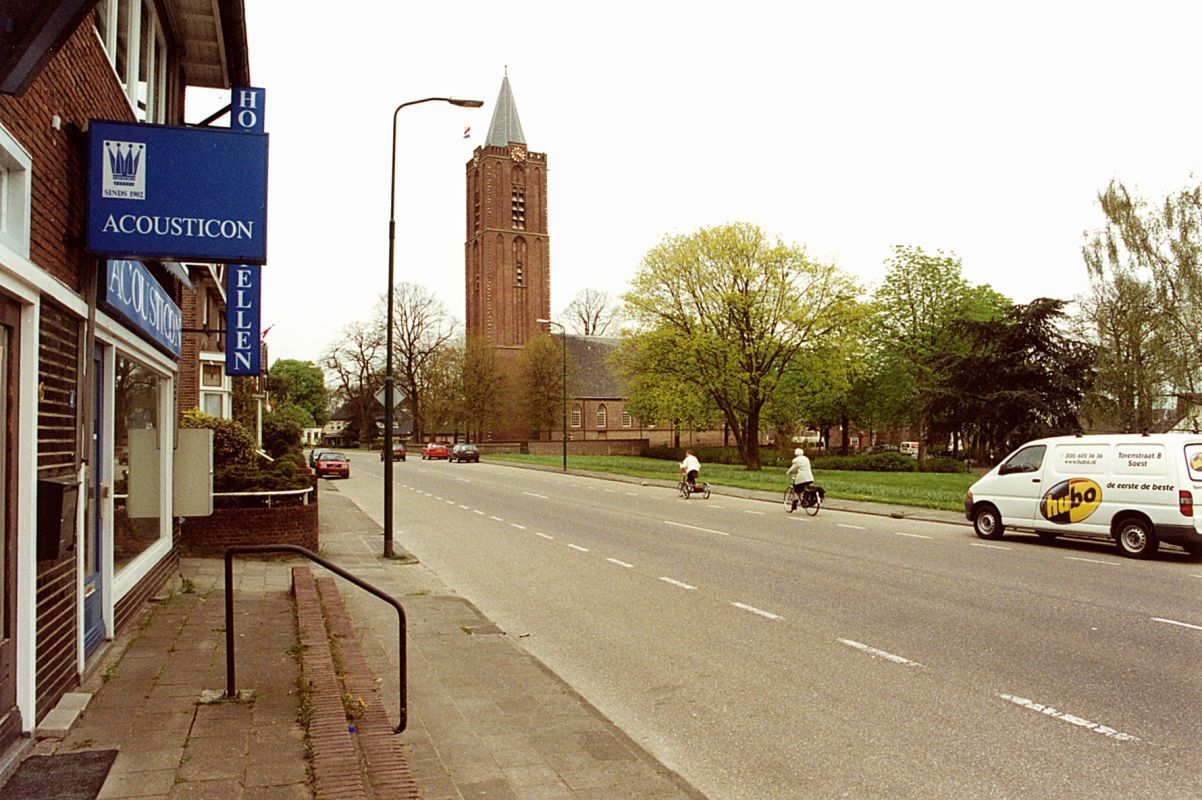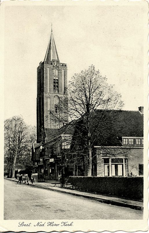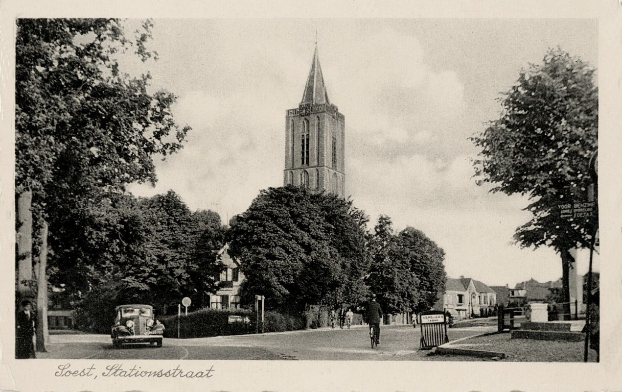 naar de toren van de Oude Kerk die rond 1482 is gebouwd nadat de kerk door een brand was getroffen bij een vergelding van de Hollanders nadat Soest en andere omliggende plaatsen een overval hadden gepleegd in Naarden.