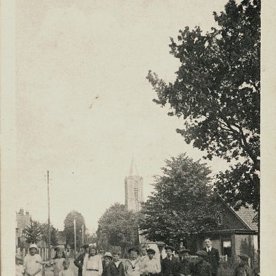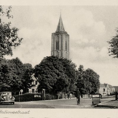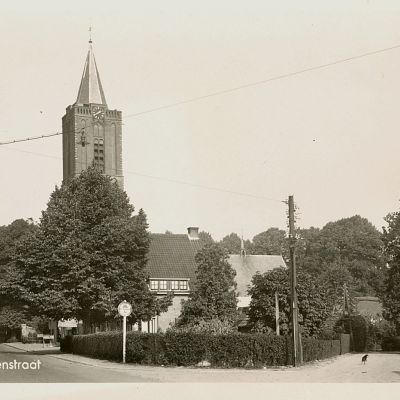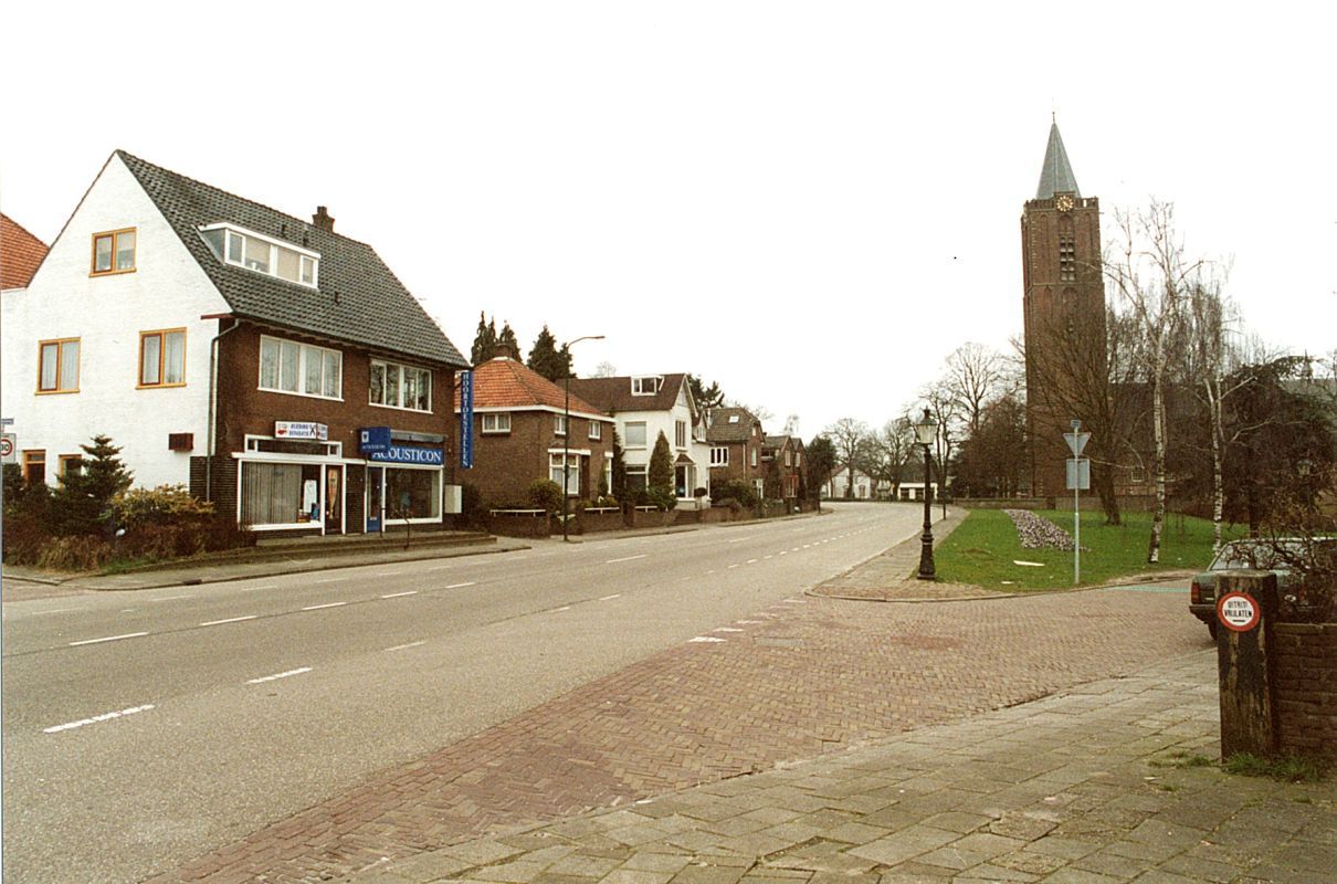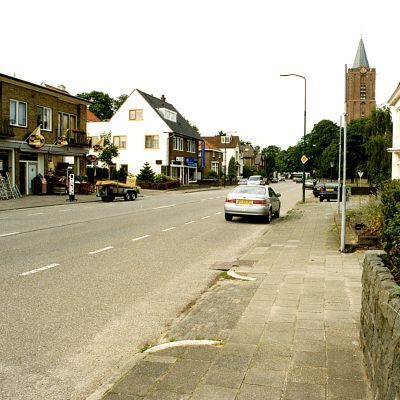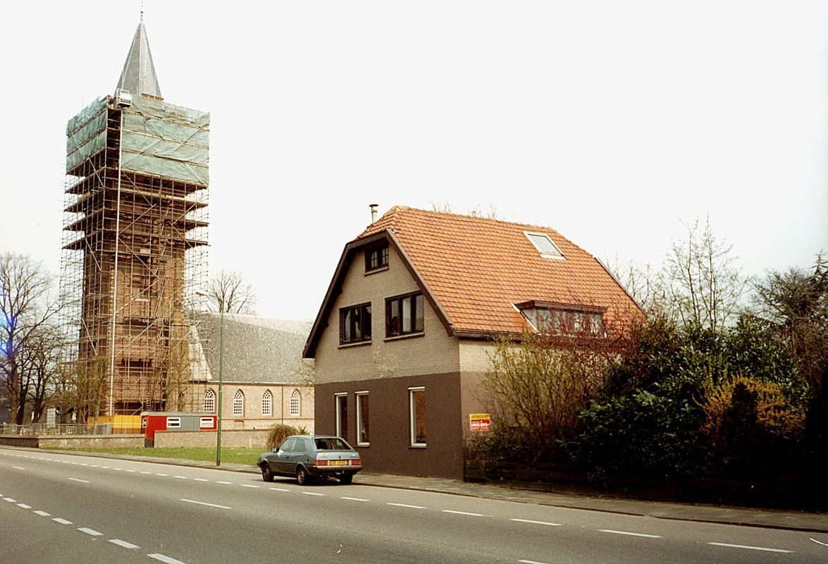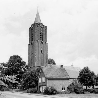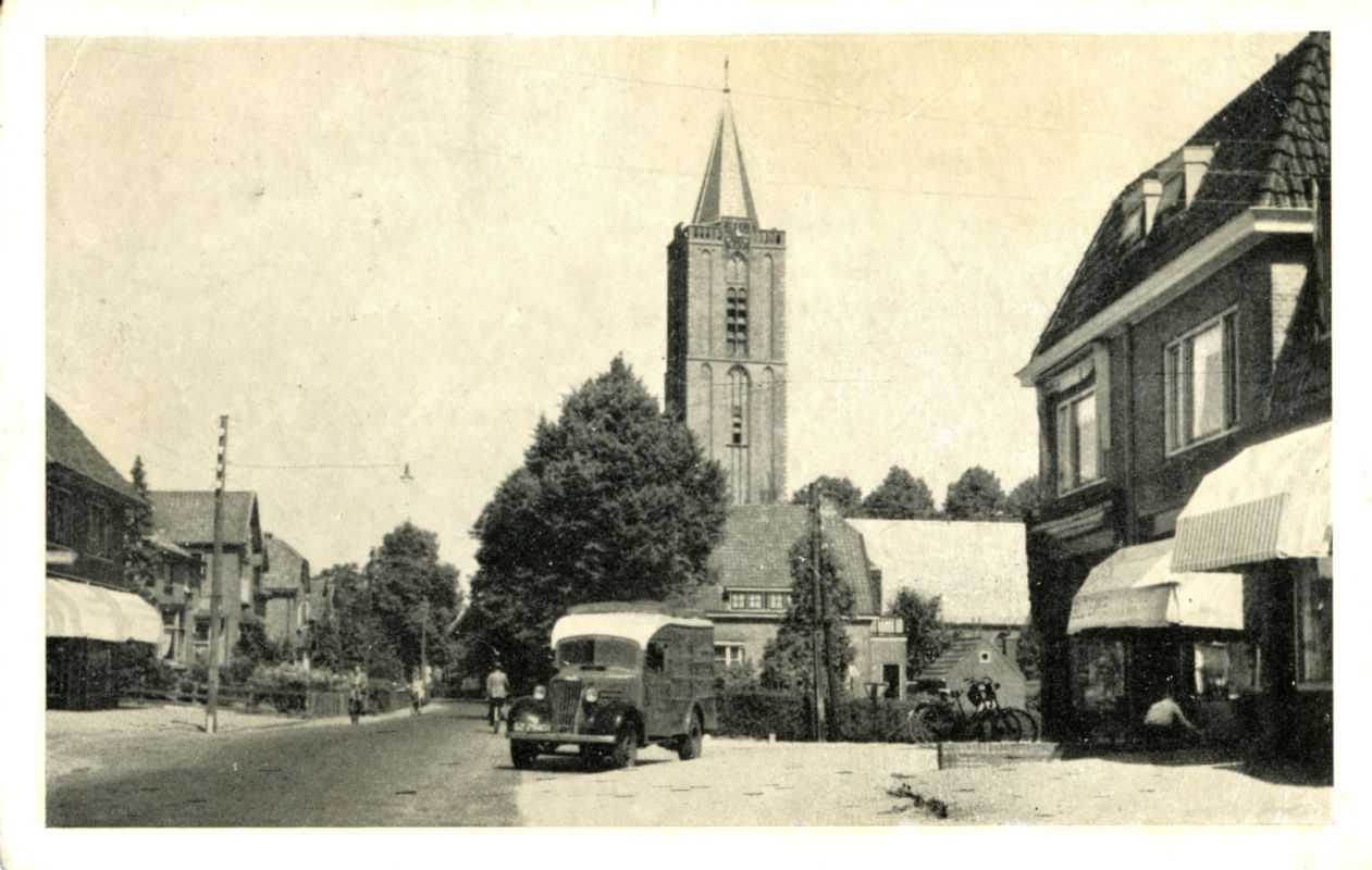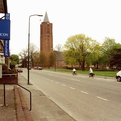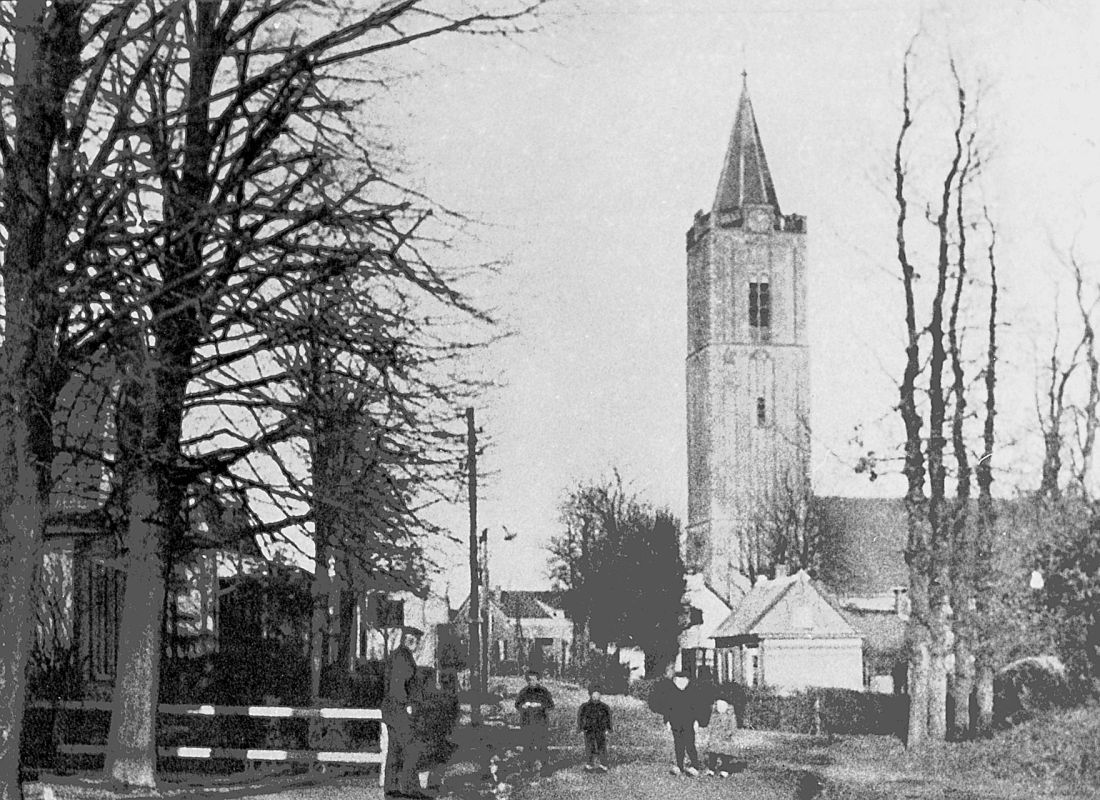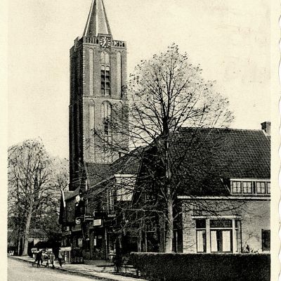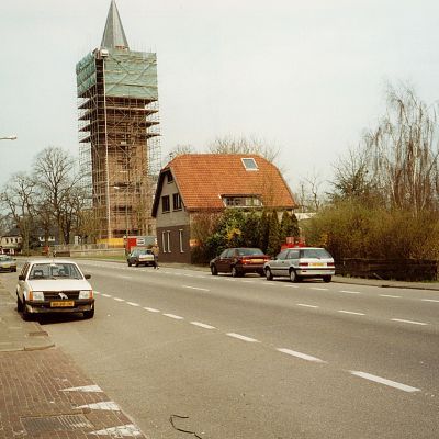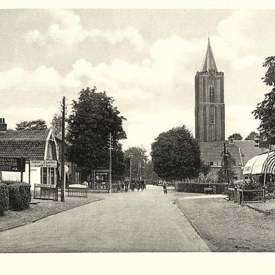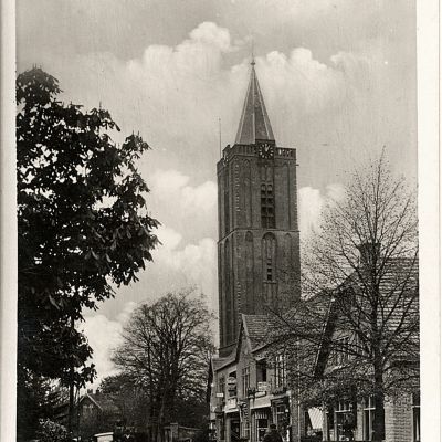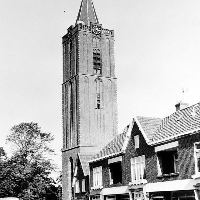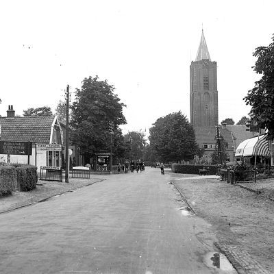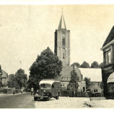 naar de toren van de Oude Kerk die rond 1482 is gebouwd nadat de kerk door een brand was getroffen bij een vergelding van de Hollanders nadat Soest en andere omliggende plaatsen een overval hadden gepleegd in Naarden.