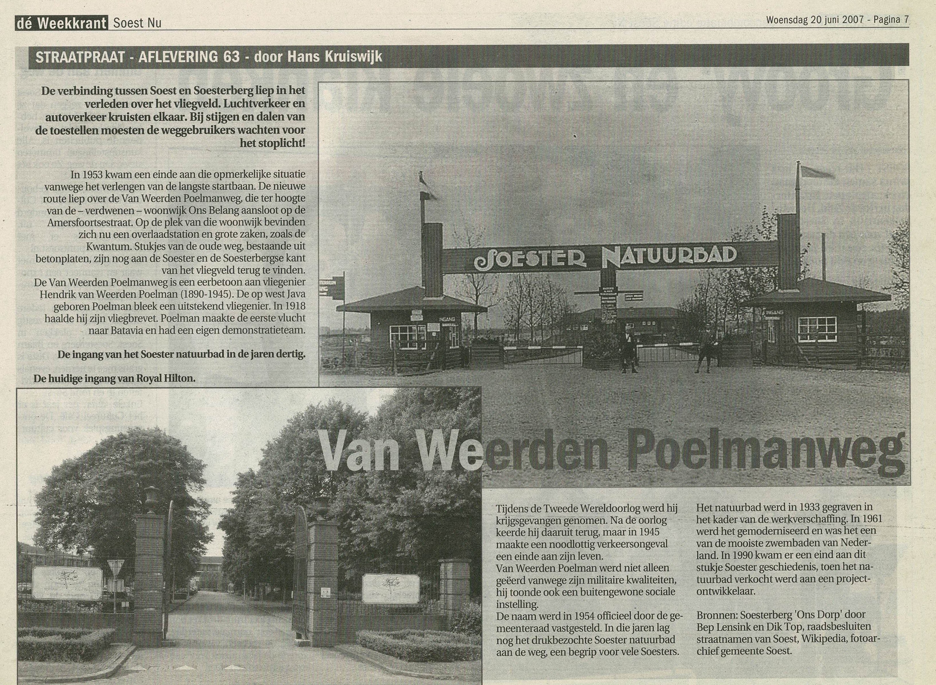 De straat Van Weerden Poelmanweg bevindt zich in de wijk Soest-Zuid en is vanaf de spoorlijn Utrecht-Amersfoort (nabij voormalig Station Soestduinen) een deel van de verbindingsweg Soest-Soesterberg v.v.