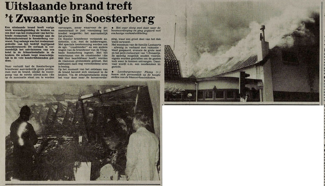 Op 3 juli 1985 wordt het pand door een uitslaande brand aanzienlijk beschadigd. De schade wordt binnen korte tijd hersteld waardoor de vele activiteiten die hier plaats vonden konden worden voortgezet (zie bericht in Soester Courant 10 juli 1985)