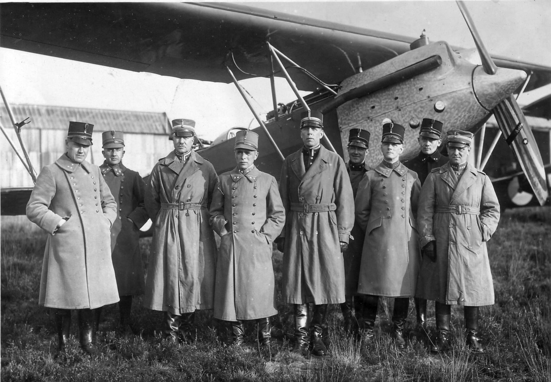 Mogelijk de enige foto van Van Heyst, hier geheel links op de foto als kapitein, bij een Fokker. Dit was een C.5. In het midden luitenant-kolonel commandant J. Hardenberg.