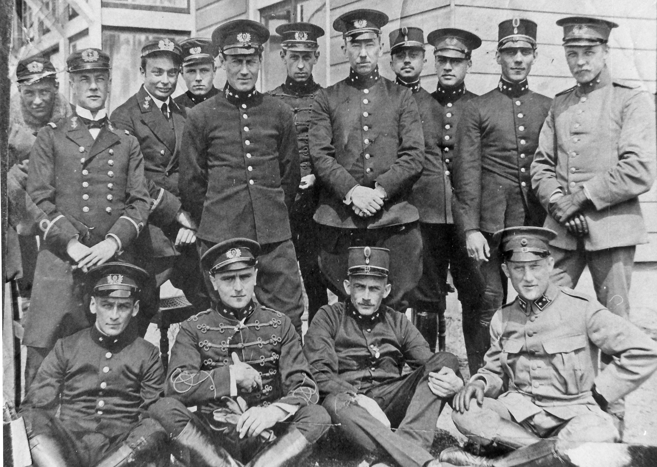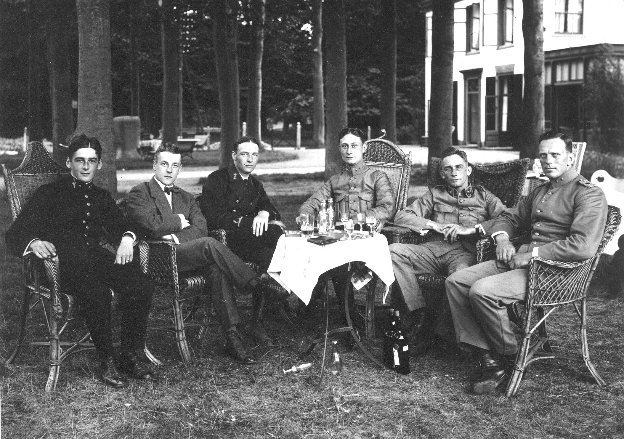 In Huis ter Heide 1917 vlnr: Henri Schlimmer (2de luitenant) - Nieuwenhuis - Doorman - Van Oosten - Bruno Schlimmer (1ste luitenant) - Plesman.(foto NIMH)