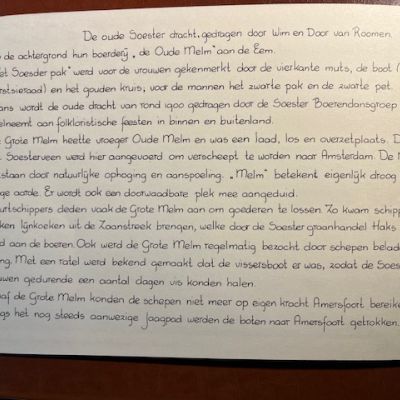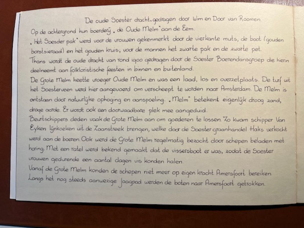 Ze vertelt over de oorlogsjaren op de Melm. Onderduikers die uit de trein sprongen werden opgevangen. Jan van Roomen, als padvinder, hielp mee om ze over het spoor te smokkelen en in Soest af te leveren, Ook werden boten verstopt in het Visgat opdat ze niet gevorderd zouden worden.