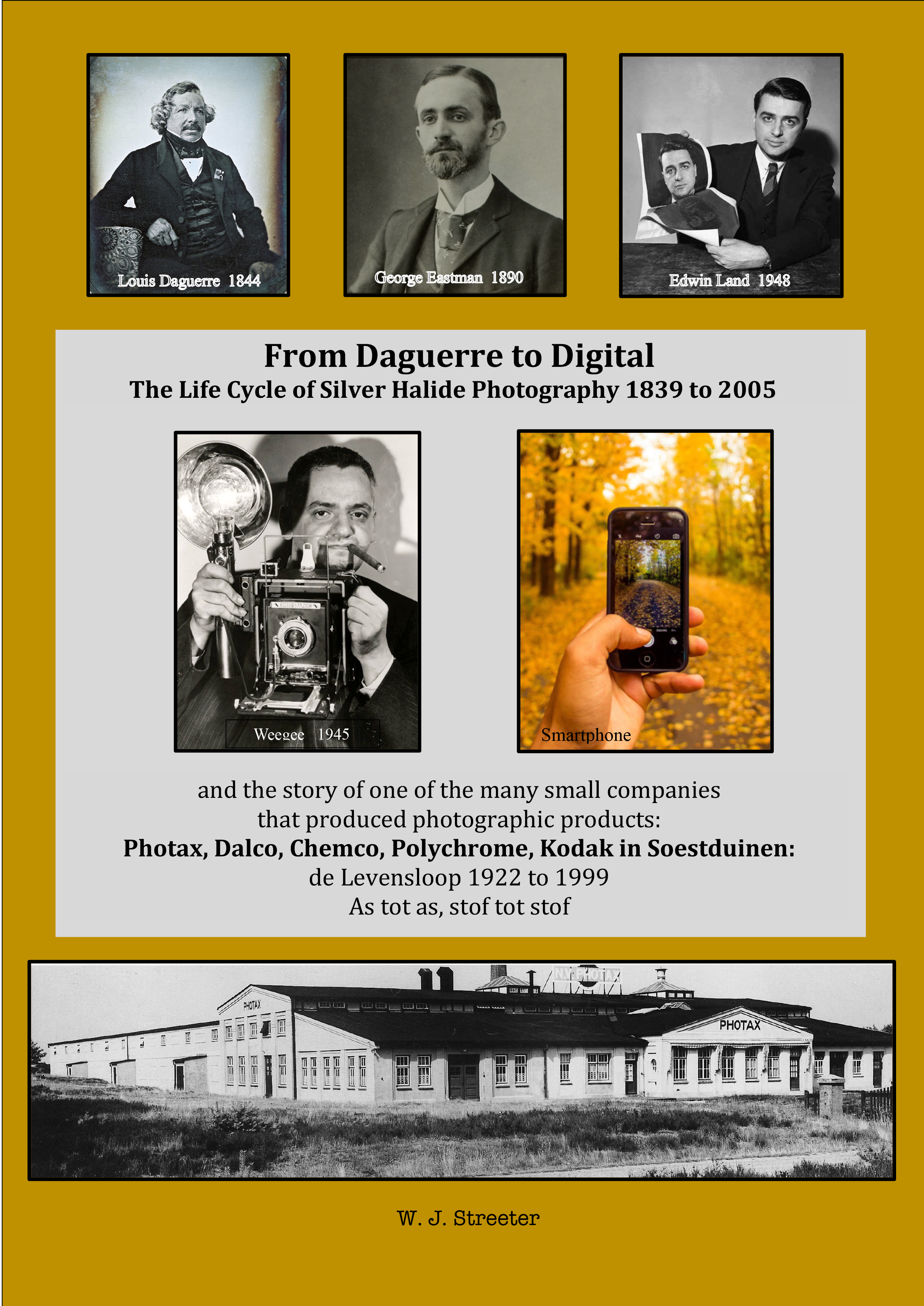 From Daguerre to Digital, the life Cycle of Silver Halide Photography 1939 to 2005; and the story of one of the many companies that produces photographic products: Photax, Dlco, Chemco, Plychrome, Kodak in Soestduinen: de levensloop 1922-1999; as tot as, stof tot stof.