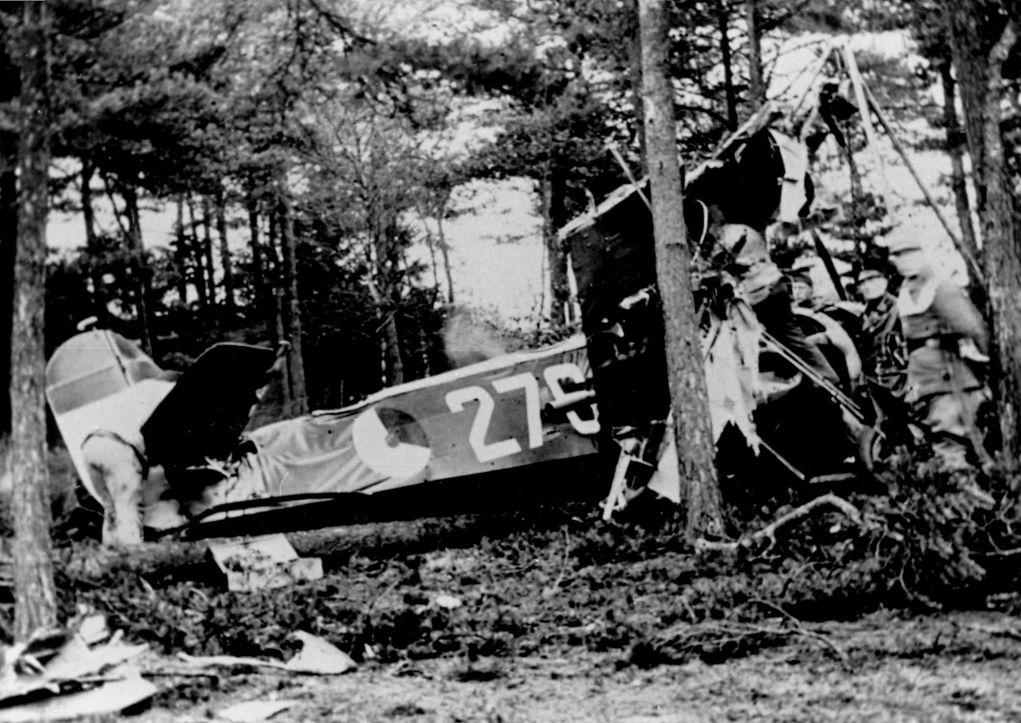 De crash van de Fokker D.16 nummer 276 in de bossen achter het gebouw van de Haagse Kinderkolonie aan de Amersfoortschestraat.