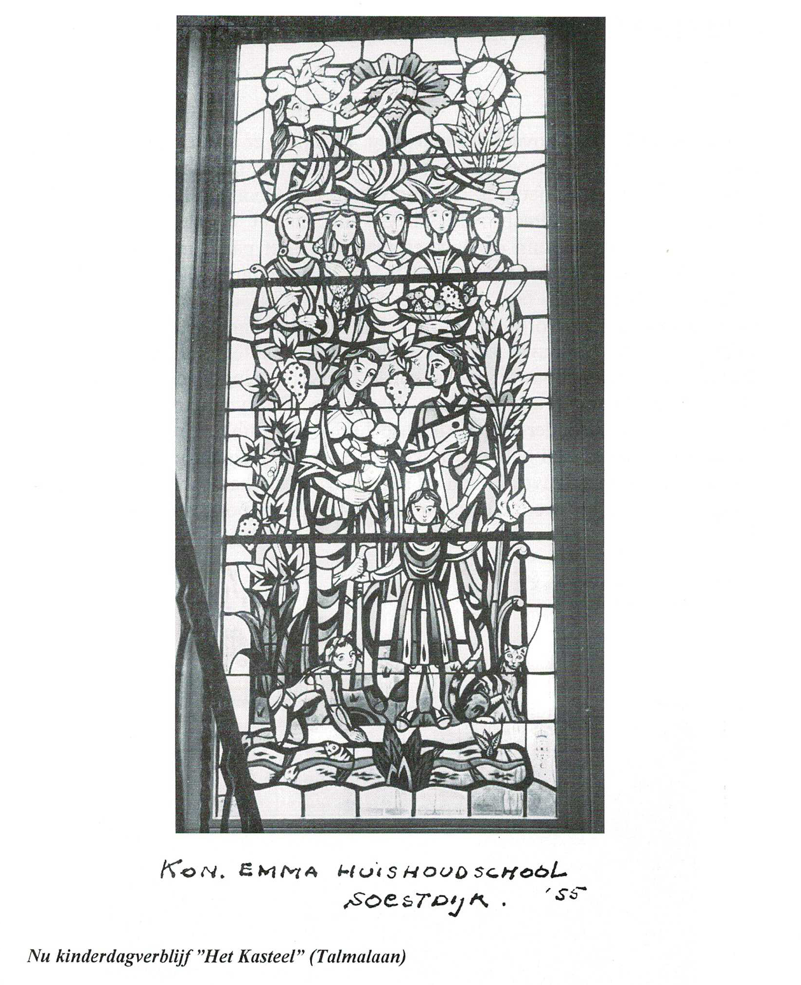 1955: Raam Koningin Emma huishoudschool Talmalaan (nu kinderdagverblijf Het Kasteel)