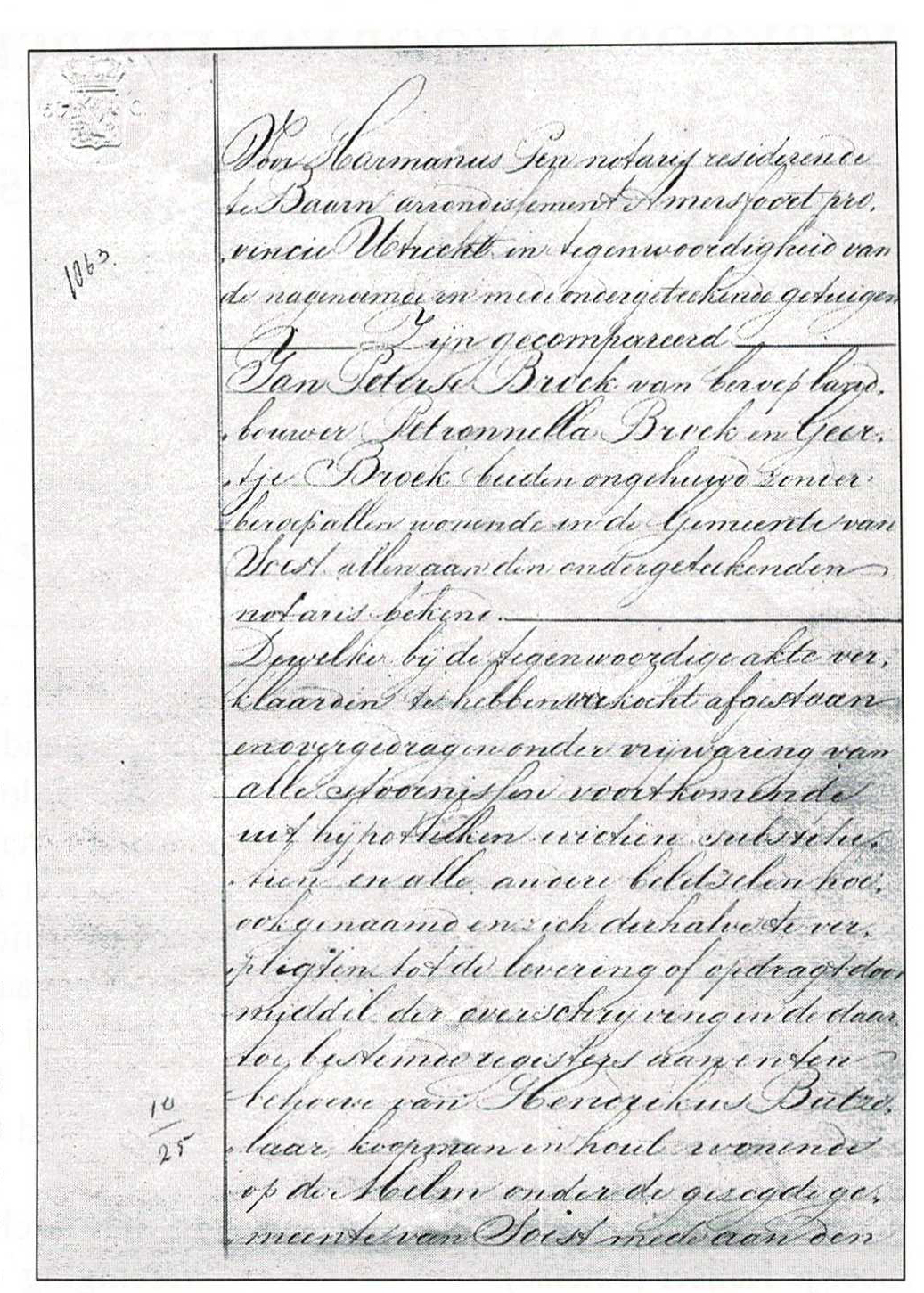 In de akte wordt vermeld dat het bewuste perceel in 1828 is aangekocht van Maria Jansen Broek.