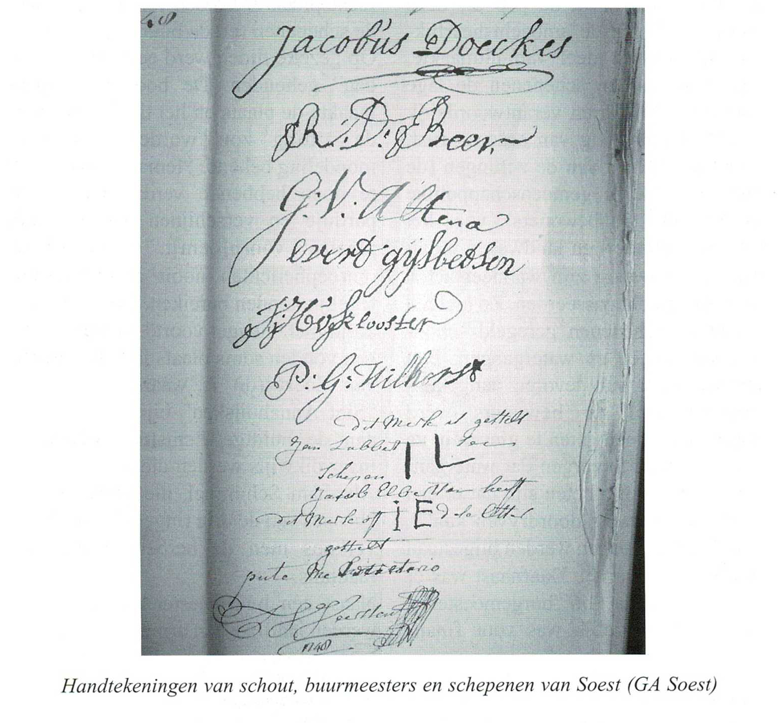 [3] Enige jaren geleden heeft de Historische Vereniging Soest deelgenomen aan een Werkgroep Elites. Toen is men begonnen met het opstellen van namenlijsten van schouten, buur-, arm-, kerkmeesters en schepenen. Deze lijsten zijn echter incompleet en een bronvermelding ontbreekt. Over een aantal vooraanstaande families is destijds informatie verzameld, maar die betreft vaak niet de 18de eeuw. Het huidige onderzoek sluit dus goed aan bij dit eerdere initiatief om de elitegeschiedenis van Soest te achterhalen.