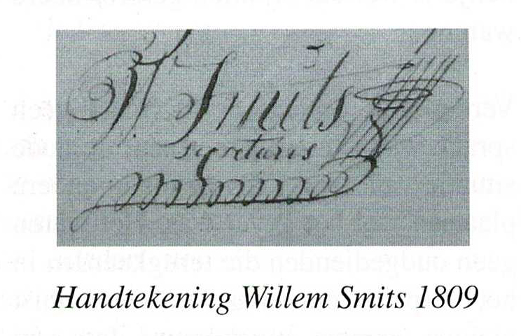 'Zoo dient dit tot berigt dat ik mij niet declareere of ik zulkx in het vervolg aanneemt of niet, voor en aleer, dat die poincte welke ik voorleeden jaar par missive heb opgegeven aan de gedeputeerde uit het provintiaal bestuur zijn uit de weg geruijmt.' [14] Smits wilde dus niet aantreden voordat het provinciebestuur zijn eisen had ingewilligd. Niet duidelijk is hier om welke eisen het precies ging. Wel wordt Willem Smits in 1799 weer in een protocol genoemd als lid van het dorpsbestuur. Was intussen inderdaad aan zijn eis was voldaan of had hij zich toch laten overhalen om weer toe te treden tot de municipaliteit?