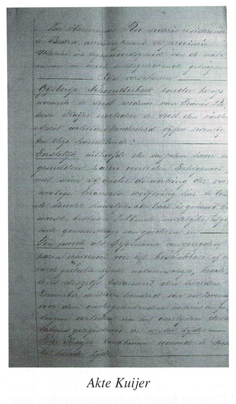 In het archief van de Historische Vereniging bevindt zich het Extract van de "Akte van Scheiding des boedels van Gijsbertje Schoonderbeek en wijlen haren echtgenoot Teunis Pieterse Kuijer" Een kleine beschouwing daarvan.