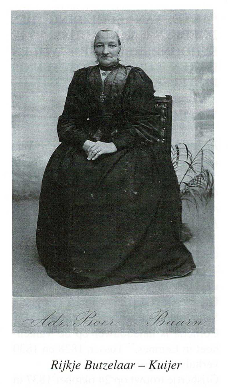 Rijkje, geboren op 1 september 1841 te Soest en overlijdt daar ook op 23 november 1909. Zij trouwt op 2 mei 1874 met Hendrikus But(s)zelaar, zoon van Hendrikus en Aaltje Broek, geboren in Soest op 30 oktober 1839 en daar overleden op 30 januari 1912.