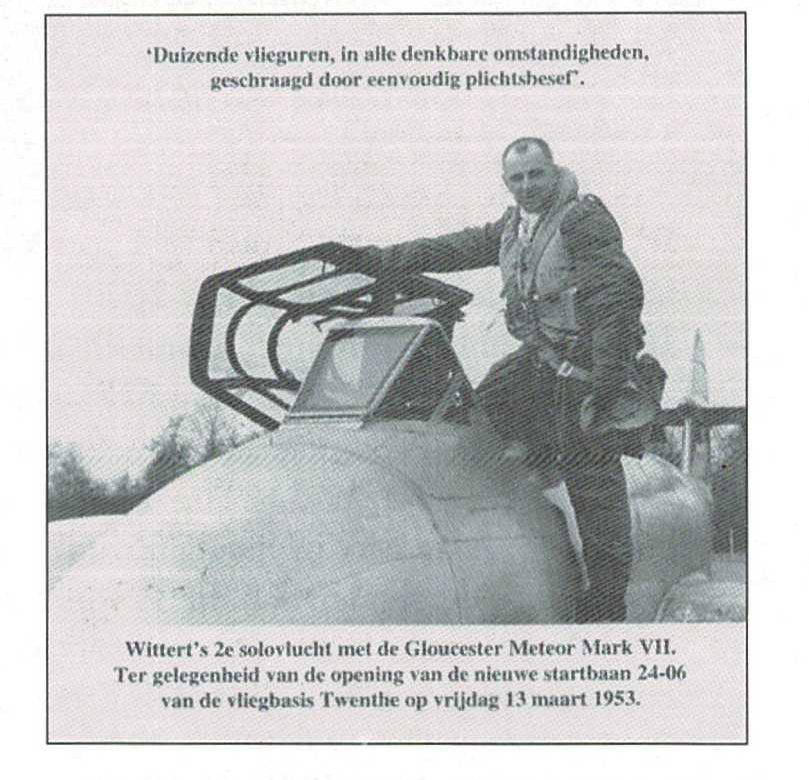 Ik vertelde het verhaal aan mijn moeder die mij kort daarna opbelde met de mededeling dat zij in de bibliotheek van mijn (overleden) vader , zoals gezegd eveneens oud luchtmachtofficier, een boek had gevonden dat samengesteld en geschreven was door Kolonel JonkheerMr. R(ené).W.C.G.A. Witten van Hoogland. Het boek " Een halve eeuw Militaire Luchtvaart" was door Witten' zoals hij hier de buurt nog steeds wordt genoemd, geschreven in zijn hoedanigheid van Hoofd van de sectie Krijgsgeschiedenis der Koninklijke Luchtmacht.