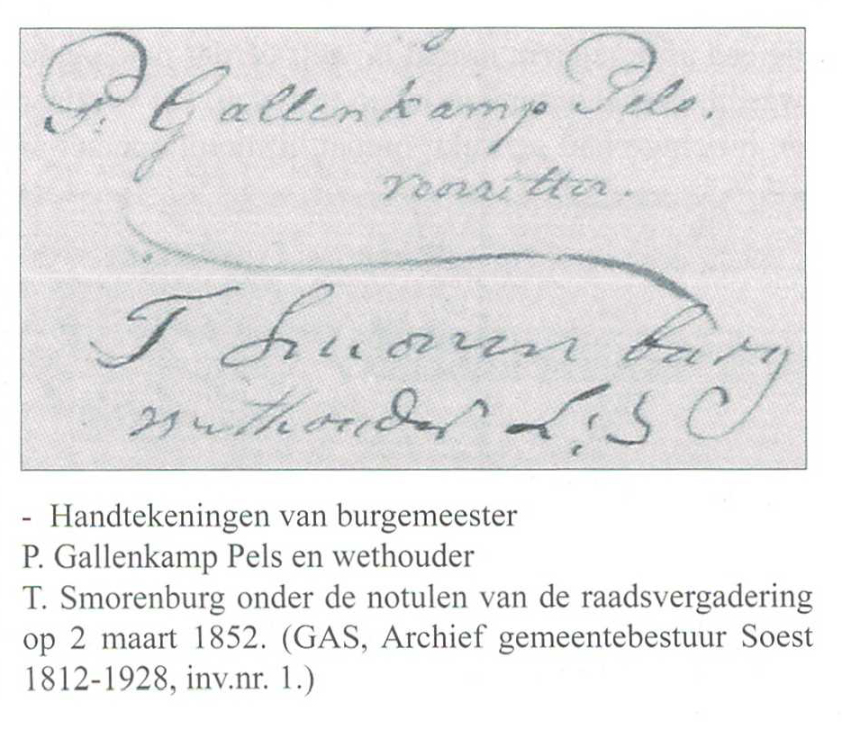 [4] Het citaat in de titel is afkomstig uit een brief van burgemeester P. Gallenkamp Pels waarin hij tegenover Gedeputeerde Staten zijn zorg uitspreekt over de onkunde van de gemeenteraadsleden. GAS, Archief gemeentebestuur Soest 1812-1928, inv.nr. 231 (1851), nr. 418, 7-11-1851.