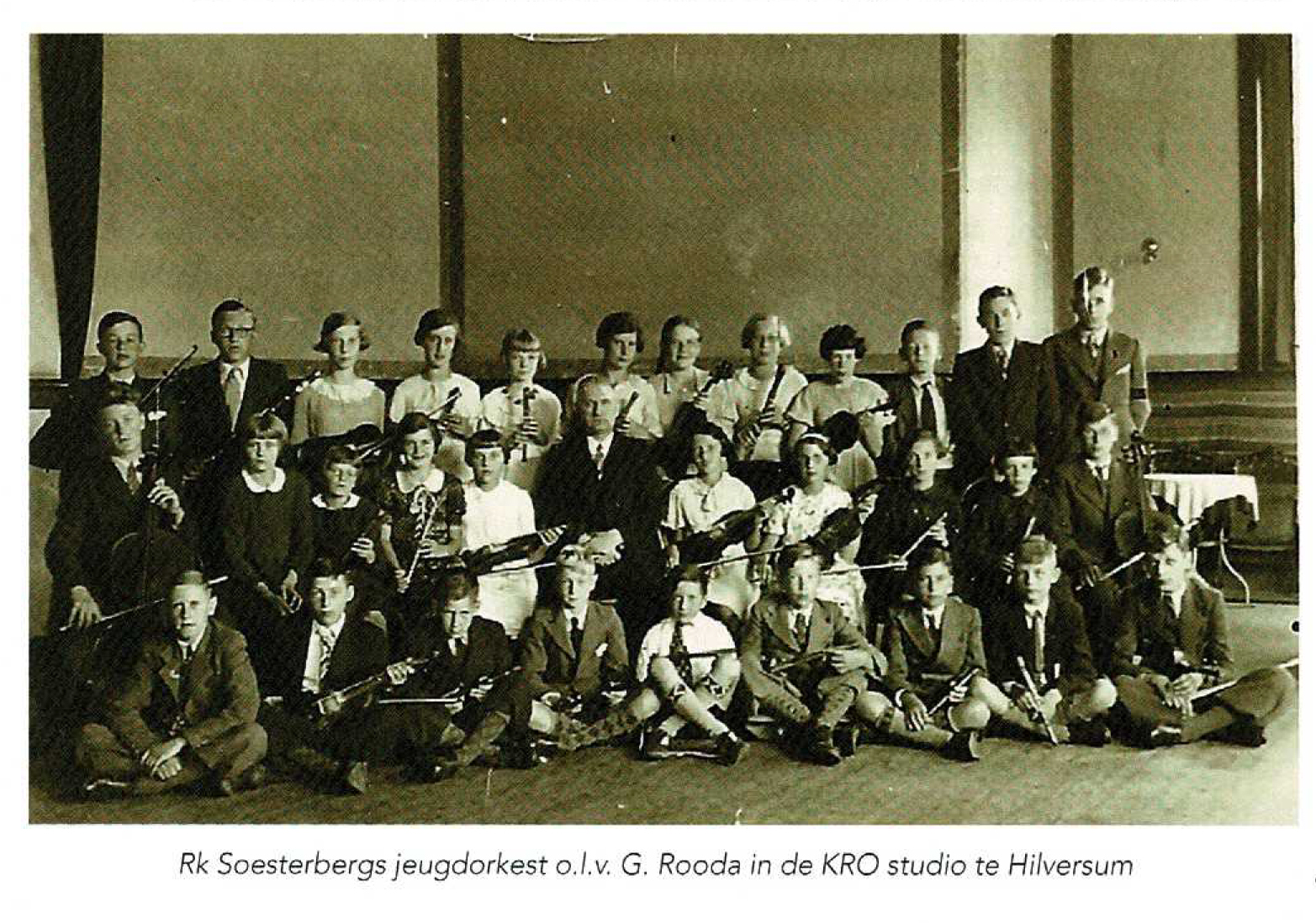 In Soesterberg zit het musiceren kennelijk in het bloed, zeker bij de heer G.H.J. (Gerard) Rooda (Schoonhoven 1891-Soesterberg 1966). In 1921 was hij al kapelmeester van een strijkorkest in Amersfoort en in juli 1932 was hij leider van een strijkkwartet dat werd gevormd door leerlingen van het Pensionaat St Louis in Amersfoort. Daarna kapelmeester aan boord van de K.N.S.M, tot hij in september 1933 verhuisde naar Rademakerstraat 27 in Soesterberg. Na een aantal succesvolle voorstellingen als solist in Soesterberg en omgeving, richtte hij in oktober 1934 de RK Soesterbergsche Orkestvereniging op. Al op 24 februari 1935 een eerste optreden met het RKKinder-Orkest, dan alleen nog nummers op de blokfluit. Rooda treedt in de beginjaren ook nog regelmatig op als solist en in andere orkestsamenstellingen onder de paraplu van zijn Soesterbergsche Orkestvereniging, zoals Soesterbergsch (Jeugd) Symphonieorkest (1936), Soesterbergsch Strijkorkest (1935/1937).