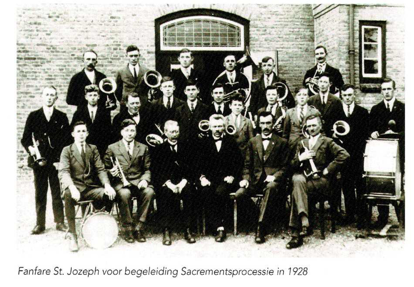 RK fanfare St Jozeph Het eerste dorpsmuziekgezelschap in Soesterberg was de RK fanfare "St Jozeph" (later ook geschreven als St Jozef/Josef), opgericht in januari 1927, tien jaar na AVIA. Voorzitter en Soesterbergs raadslid Martinus Scheffer vraagt in 1927 toestemming van B&W voor een tombola voor de aanschaf van instrumenten voor het muziekkorps. Het eerste optreden was op 10 juni 1928 bij de jaarlijkse Sacramentsprocessie, een maand later gevolgd door het eerste tuinconcert in Huis ten Halve. Dirigent was gedurende vele jaren J.J. Wakelkamp uit Amersfoort. Reeds in september 1924 leidde hij ook in Amersfoort de RK Muziekvereeniging "Wilskracht". Op 20 november 1928 alweer een optreden nu in de concertzaal van 't Zwaantje. Op deze avond zal ook een humorist aanwezig zijn "om de lachspieren in beweging te brengen". Tevens werd aan de jonge vereniging het nieuwe vaandel aangeboden.
