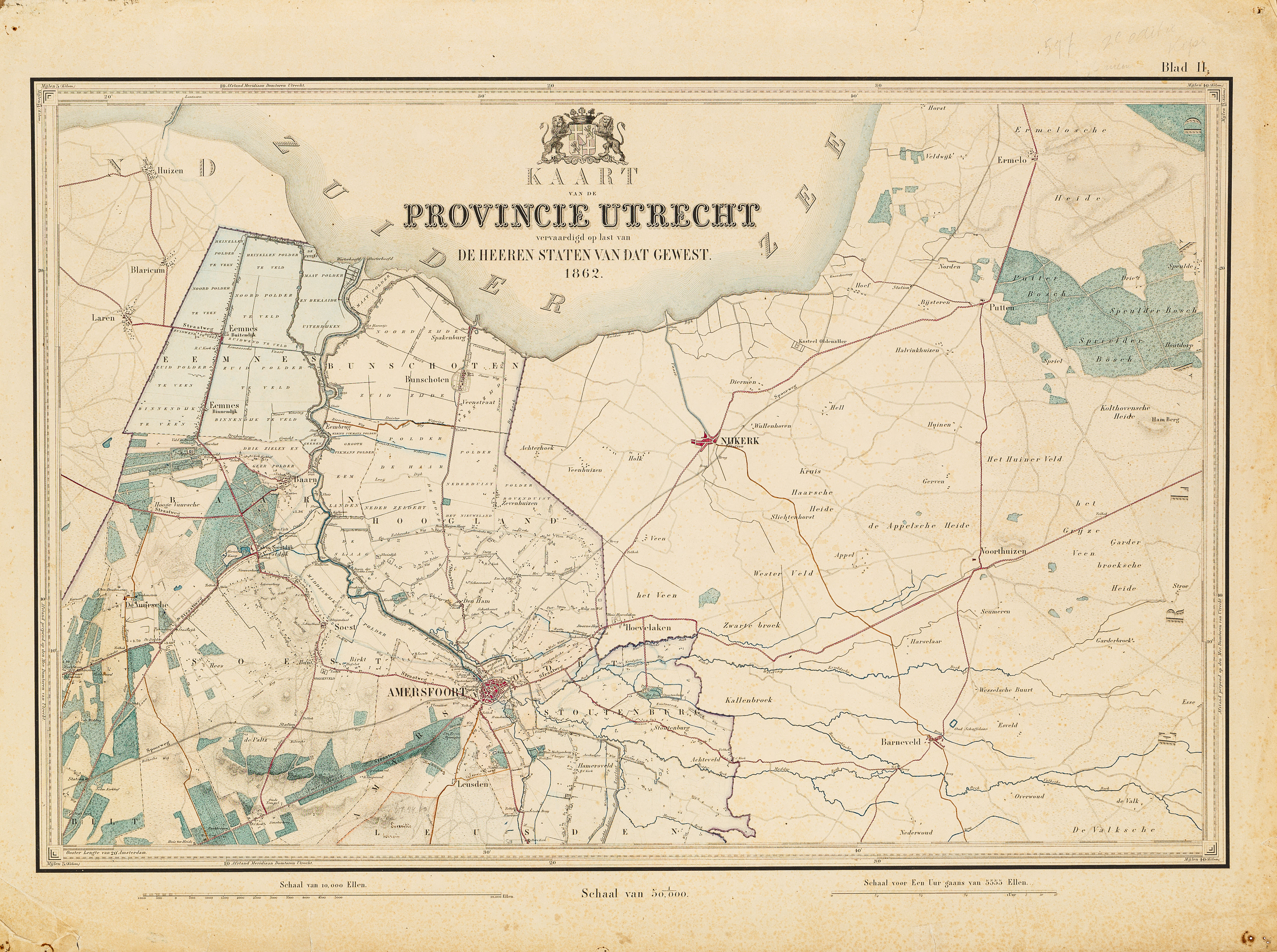 Afbeelding 1: Kaart van de Provincie Utrecht uit 1850, blad II, noordoost (Beeldbank Archief Eemland 1001_455