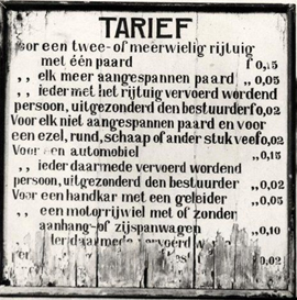 In een instructie voor de tolpachter uit die tijd lezen we dat deze zich stipt moest houden aan het per koninklijk besluit vastgestelde toltarief. Tol werd betaald per dier (muilezel, paard, rund), kudde schapen, honden- of handkar, kruiwagen, paard en wagen enzovoort. Het tolgeld voor de diligences (postkoetsen) en de wagens van de grote bodediensten werd niet door de tolgaarder geïnd. Deze vervoerders betaalden hun tol rechtstreeks aan de straatwegonderneming op grond van een met de commissarissen overeengekomen contract. Voetgangers waren vrij van tol en veel later de fietsers ook. Het tarief en de vrijstellingen stonden vermeld op een groot bord bij ieder tolhuis.