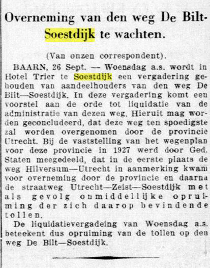 Na de opening van het tolstation op deze weg in 1863 vonden Soesters het oneerlijk dat zij tol moesten betalen om daar gebruik van te kunnen maken en Soesterbergers niet. Zij wilden daarom een tweede tol om dat recht te zetten. Dit kleingeestige plan werd door de Raad gelukkig niet overgenomen.