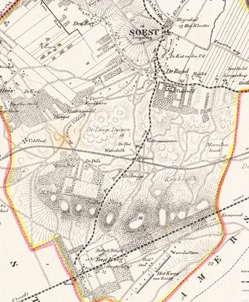 De Nieuwe weg van Soest naar Soesterberg, uitsnede Atlas Kuiper, 1865 (Archief Eemland)