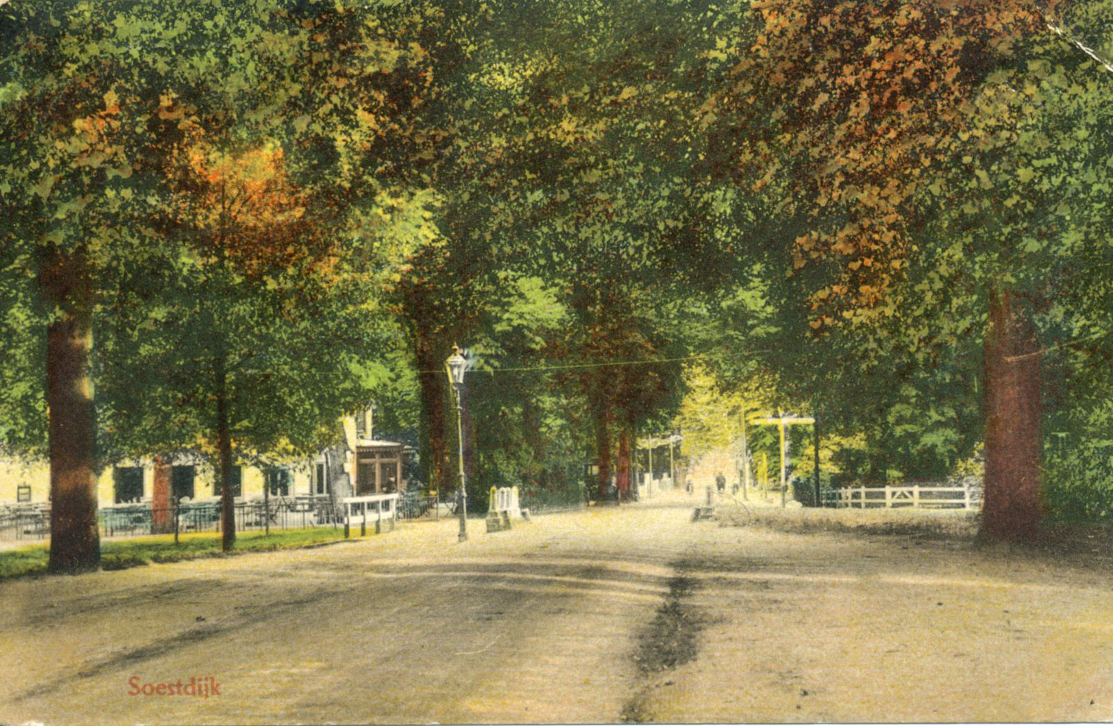 Rijksweg Soestdijk richting Soest, links Hotel Trier, rechts stond het tolhuis, ca 1925