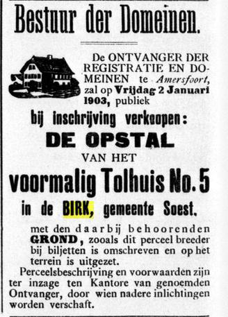Verkoop Tolhuis 5 op de Birk, december 1902